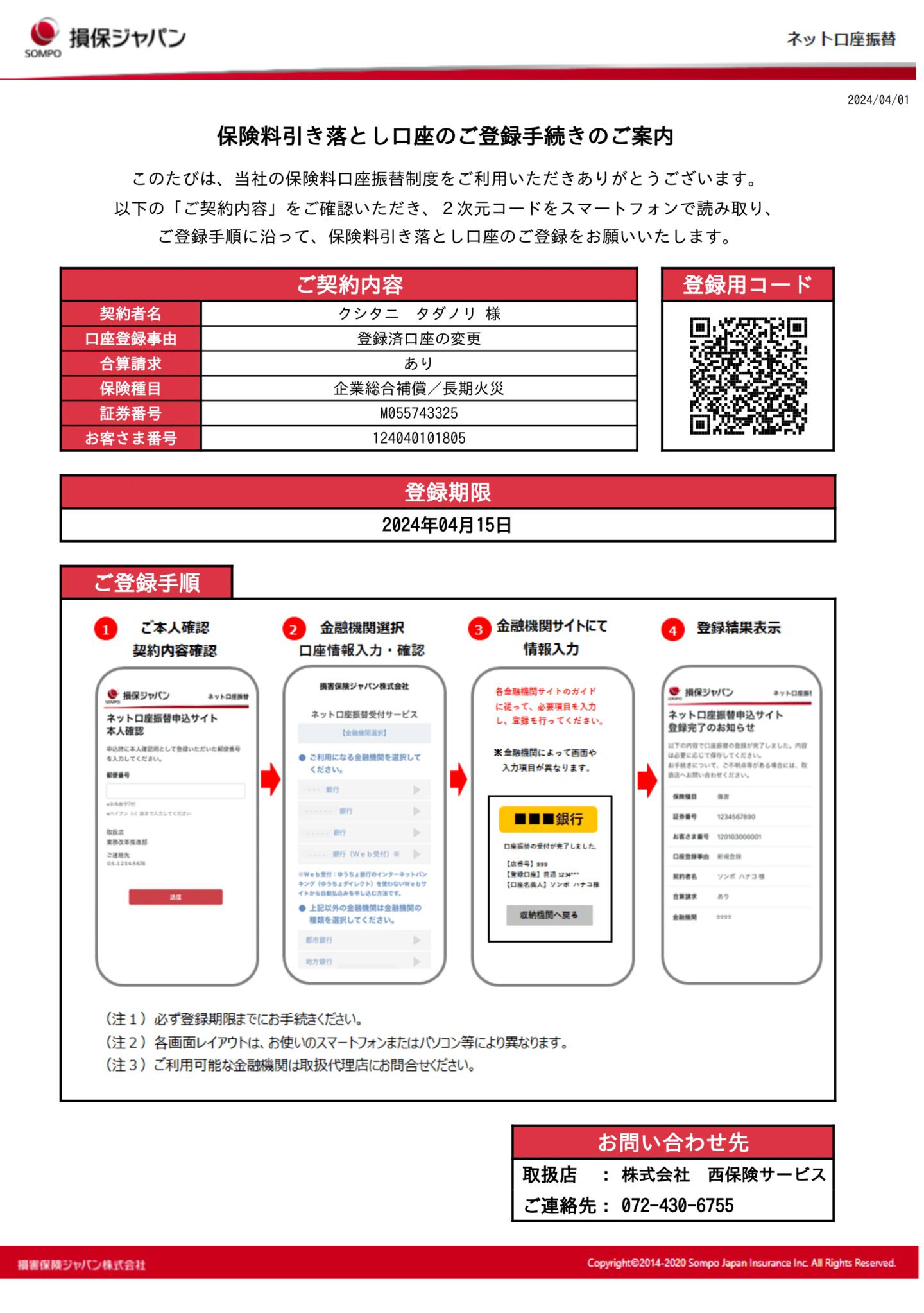 櫛谷 様 火災保険(地震特約)お払込票